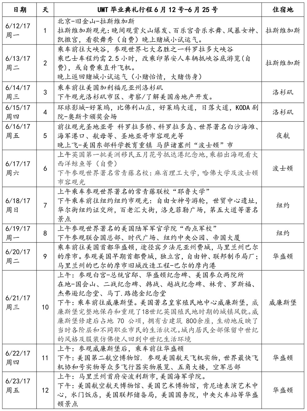 美国管理技术大学2017年毕业典礼赴美行程表(14天)