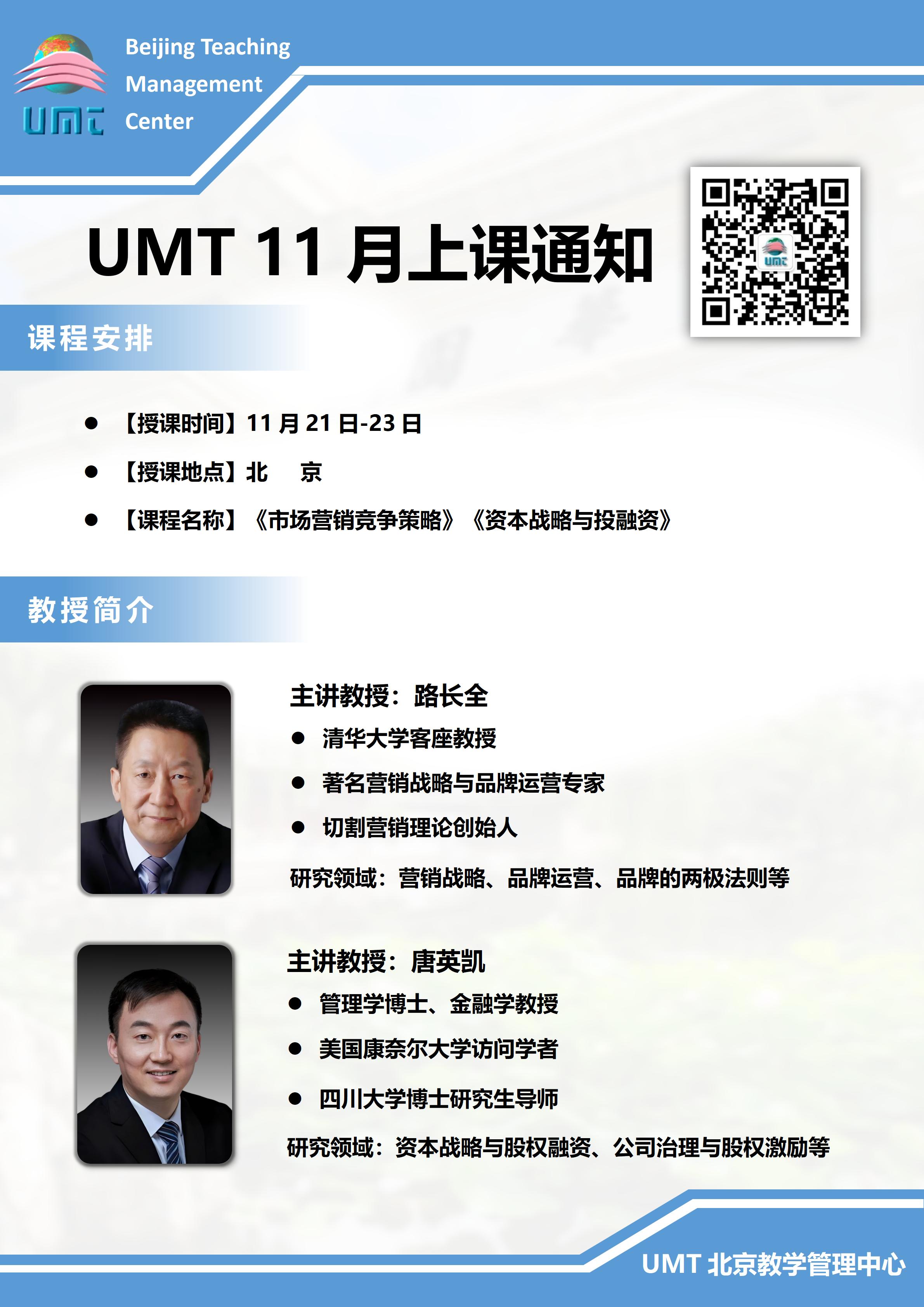 UMT工商管理学位班2025年11月份上课通知