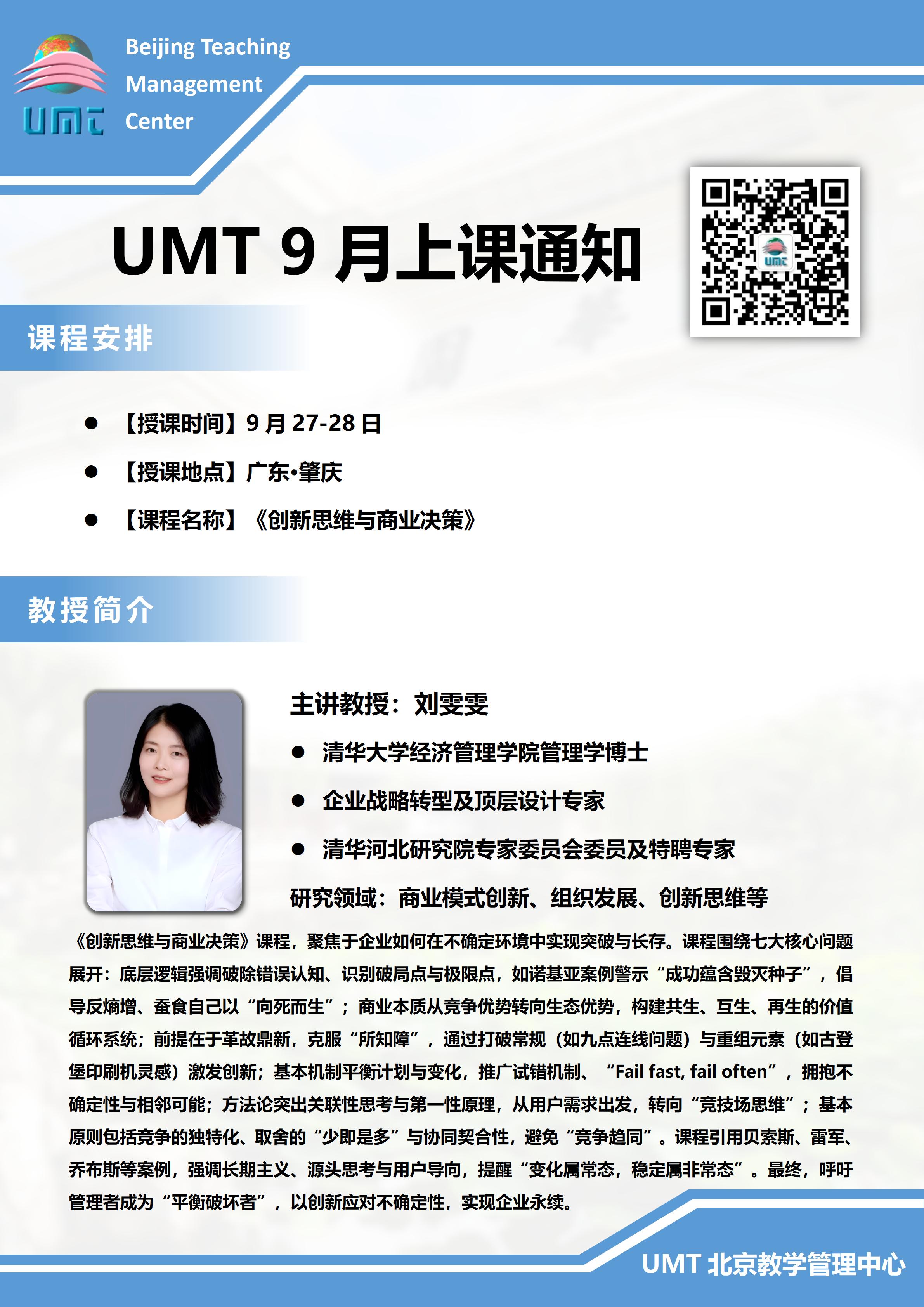 UMT工商管理学位班2025年9月份上课通知